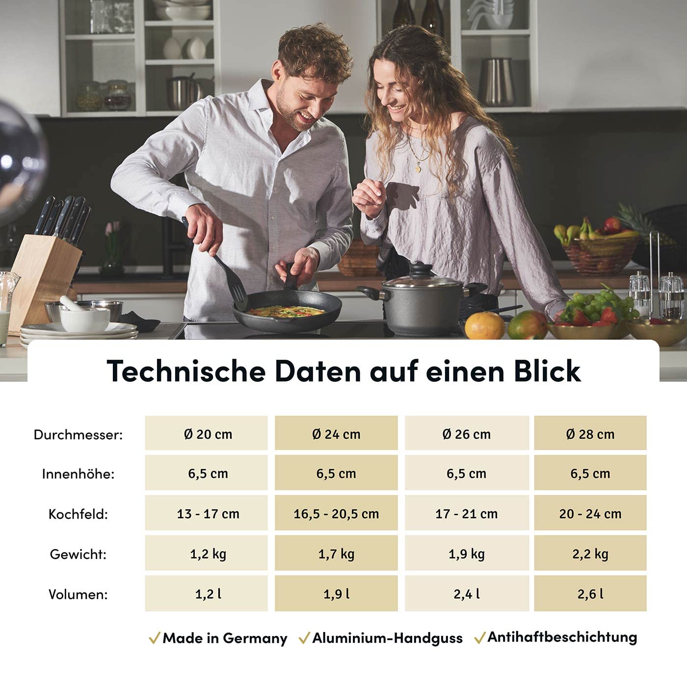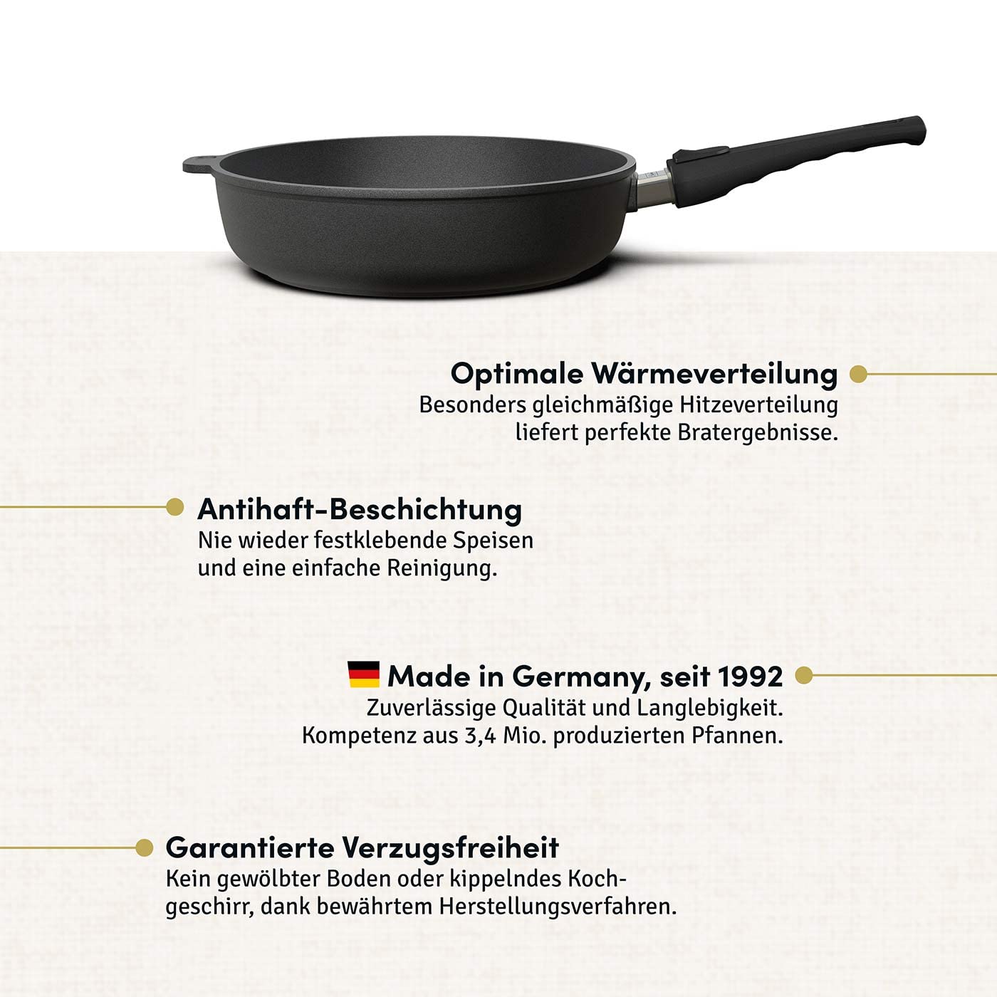 Hoffmann Aluguss Bratpfanne 28 cm Induktion Hoher Rand 7 cm Innenhöhe I Pfanne Induktionsherd I Schmorpfanne 28cm I Abnehmbarer Griff Hochrandpfanne
