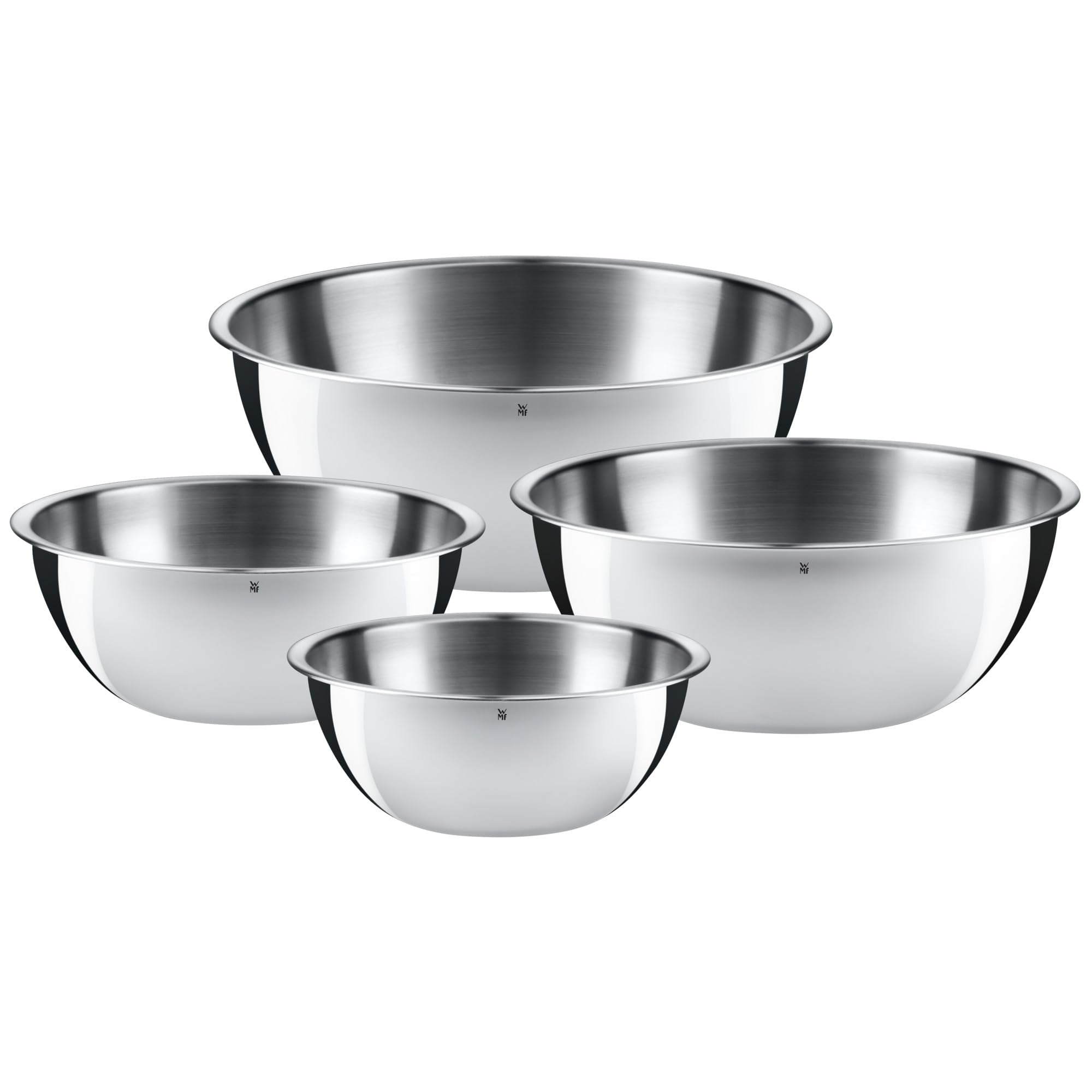 Schüssel ist nicht gleich Schüssel. Daher bietet WMF eine Vielzahl von Küchenschüsseln – für verschiedene Zutaten und unterschiedliche Zubereitungsmethoden. So eignen sich beispielsweise Schüsseln mit Griff und stabilem Standring zum Aufschlagen von Sahne oder Eiern. Die großen, bauchigen Küchenschüsseln hingegen sind ideal fürs Rühren. Für die Zubereitung mit einem Stabmixer dienen hohe Schüsseln mit Griff. Darüber hinaus bietet WMF Schüsseln mit einem Schüttrand, der ein leichtes Ausgießen ermöglicht, ohne dass etwas danebentropft. Die WMF Küchenschüsseln sind aus Cromargan Edelstahl Rostfrei 18/10 gefertigt, einem Material, das äußerst formstabil ist und im Gebrauch – beispielsweise mit einem Rührgerät – unverwüstlich bleibt. Sämtliche Schüsseln sind leicht zu reinigen, spülmaschinenbeständig und damit sehr hygienisch. Ob als Salatschüssel, Rührschüssel, Servierschüssel oder Wasserbadschüssel - die Schüsseln aus diesem Edelstahl Schüssel Set sind multifunktional verwendbar, robust und stilvoll.